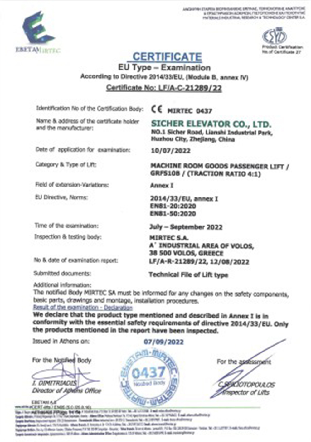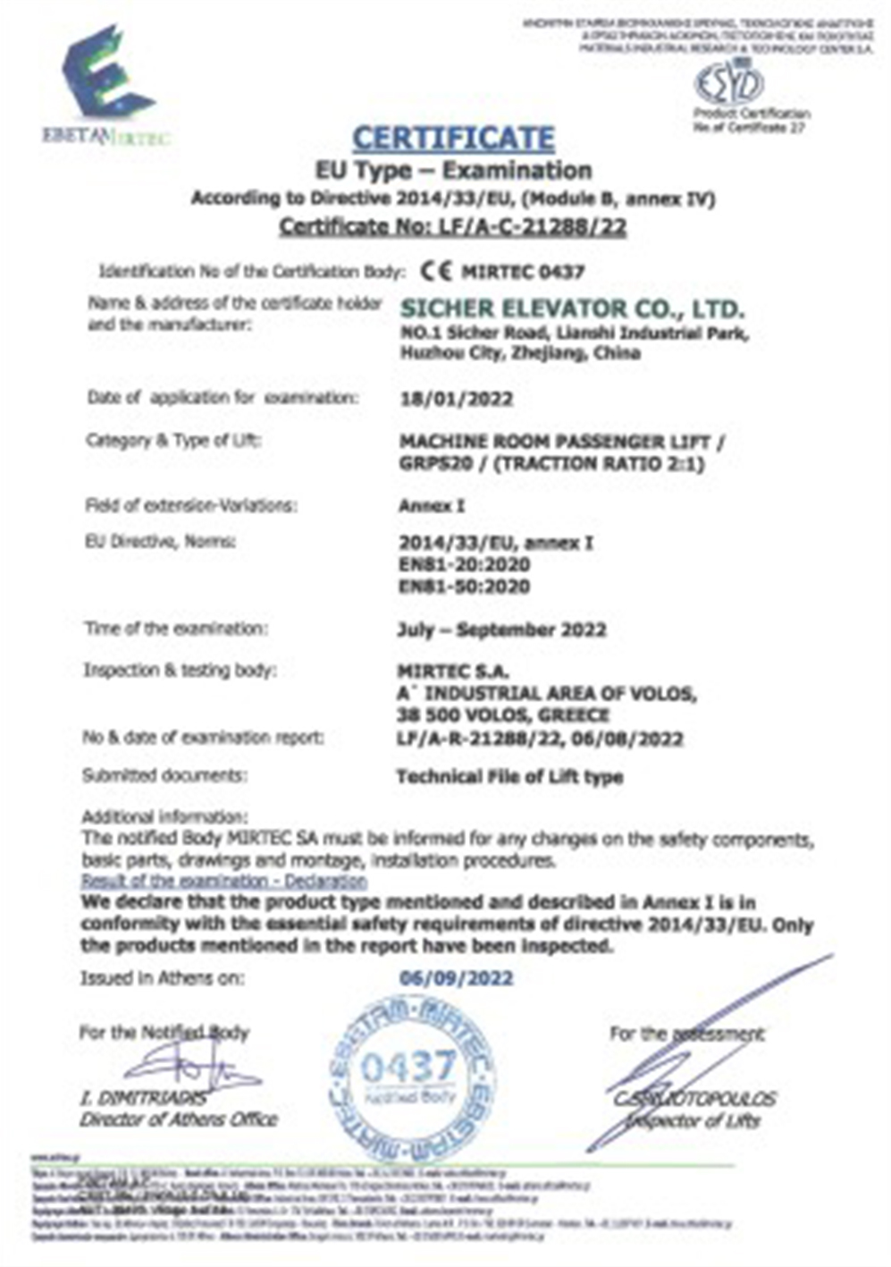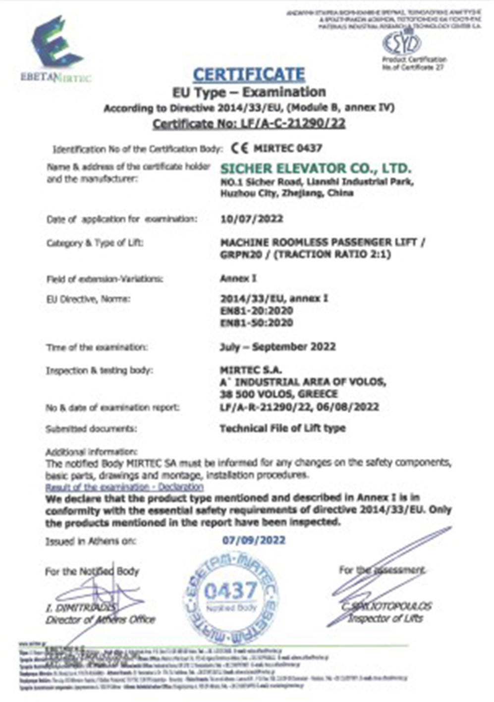 PT. Sicher Elevator Indonesia merupakan penyedia layanan manufaktur elevator komprehensif yang terlibat dalam pengembangan, manufaktur, penjualan, pemasangan, pemeliharaan, dan pembaruan modem serta transformasi elevator, dan memegang lisensi produksi tingkat tertinggi nasional untuk memproduksi peralatan khusus (A1).